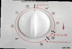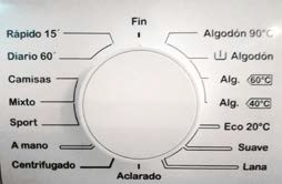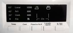 Lavadora // Solo tienes que elegir un programa: para normal el lavado puede ser rápido con 15 min -Rápido 15-, o para un lavado intenso con 60min -Diario 60min-, o bien el programa por tipo de ropa. En la pantalla de la derecha verás otros detalles como la temperatura o el giro y muy a la derecha el botón para REPRODUCIR o PAUSAR.