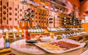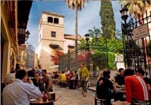 El Pimpi es la bodega más grande de Málaga. Tiene doble entrada, desde de la calle Granada y de la calle Alcazabilla. Con solo cruzarlo, lo haremos me di cuenta de lo genuino que es el lugar, lleno de patios y enormes barriles de vino Con vistas al Teatro Romano hay un gran y agradable terraza jardín. Es típico pedir una botella fría de vino dulce de Málaga para compartir con un delicioso plato de jamón y queso. En el piso superior a veces los jueves puedes encontrar conciertos de flamenco.